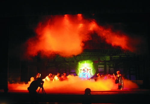 藝術(shù)的表現(xiàn)方式具多樣性,但歸根結(jié)底還是取決于表現(xiàn)的手段。而舞臺(tái)燈光作為演繹作品創(chuàng)新的一種新元素,不僅能制造出舞臺(tái)空間各種色彩斑斕的可視圖象,而且更能在渲染氣氛上做到瞬息萬(wàn)變,這對(duì)文藝作品內(nèi)涵的體現(xiàn)起到了畫龍點(diǎn)精的作用。
